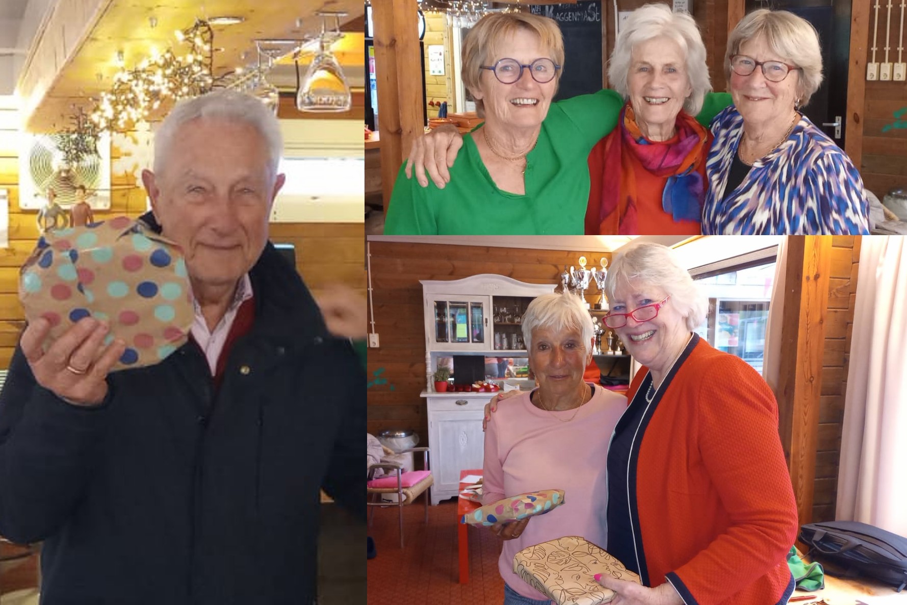 het clubhuis waren de tafels gedekt en daar werd de rest van het diner genuttigd. Hank had zich enorm uitgesloofd en een heerlijke rijsttafel gemaakt. Tussen de gangen door werd de uitslag bekend gemaakt. De uitslag van de puzzels telde mee met de uitslag van het bridgen en de grote winnaar was Hans van Vianen. Kitty, Petra en Margreet waren de overige winnaars. Margreet bedankte de organisatie voor de geweldige dag. Een geweldig ijsbuffet was het sluitstuk van de dag. Na afloop hielpen een aantal mensen met het opruimen van het clubhuis en kwam een geweldige dag ten einde.