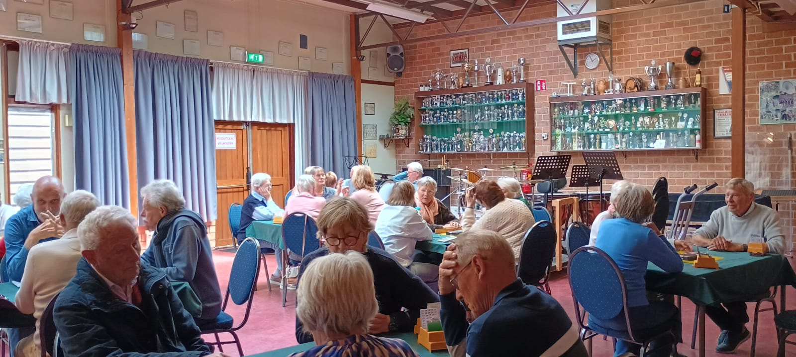 uitgedeeld en wat bleek, niemand speelde met de eigen partner. Loting had uitgemaakt wie met wie speelde en dat gaf leuke samenstellingen. Tijdens de koffie werden hier 2 rondes gespeeld. Daarna was de TechnoHUB(opleidingslocatie) de 2e locatie. Daar gaf Hans Bakker een boeiende uitleg over het ontstaan van de HUB en kregen we ook een rondleiding. Hier werd niet gekaart. De volgende locatie was “de Speeldoos” aan de Singel, de thuisbasis van fanfarecorps Excelsior.