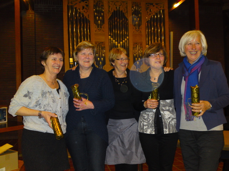 12 december 2012 Koepwodan Kitty en Nol werden overtuigend eerste met 64,29%. Ook Bep en Gusta scoorden boven de 60%. Met 61,07% werden zij tweede. De derde plaats was met 57,04% voor Marijke en Kees. Na afloop bleef het nog lang gezellig. Anneke trakteerde op een drankje ter gelegenheid van haar ....ste verjaardag en werd uit volle borst toegezongen..