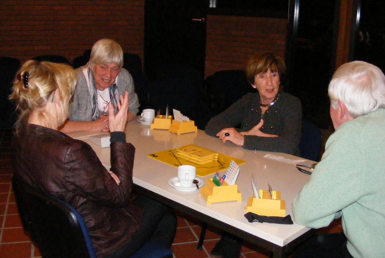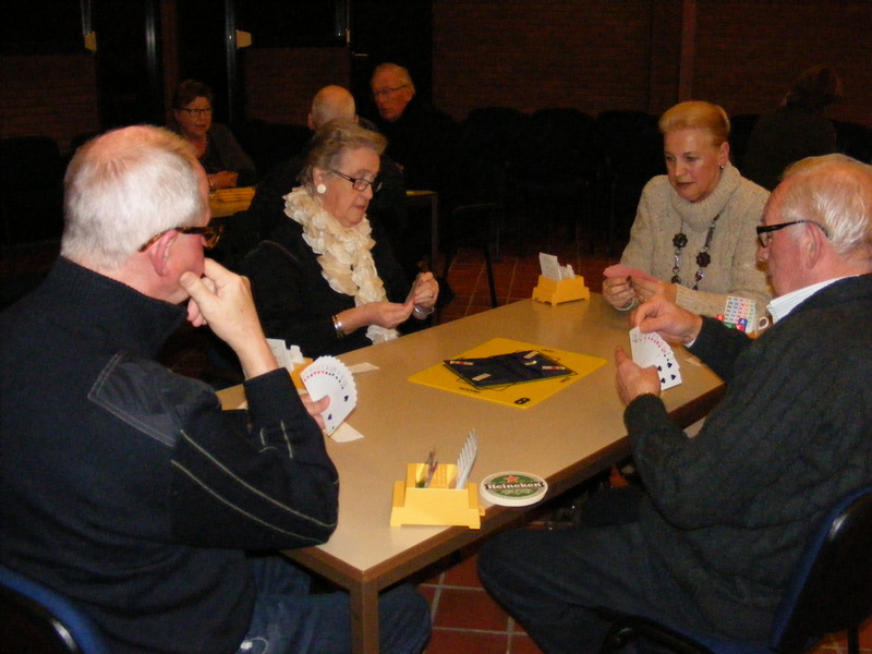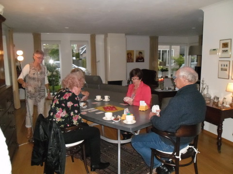 11 maart 2013 Ontmoeting met BCL Er was een inspirerende locatie gevonden om de BCLers te ontvangen, er waren spionnen naar de mami van BCL gestuurd, er waren heel veel lekkere hapjes klaargemaakt, de drank was (bijna) voor niets, Ria en Ingrid en Gusta en Fetty werden overtuigend eerste en tweede (twee gelegenheidskoppels nota bene !!!), maar helaas helaas ... het mocht niet baten. Ook deze (alweer de vierde) keer ging de beker naar BCL. Dat was het slechte nieuws. Het goede nieuws is dat het verschil dit keer minimaal was ... en natuurlijk bleef het nog lang gezellig. De volledige uitslag is hier te zien.