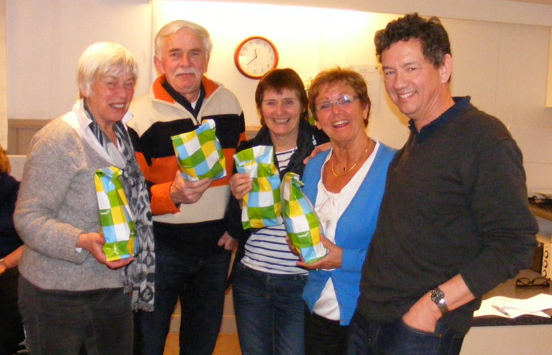 De trotse winnaars Fien, Henk, Ingrid en Netty met een toch nog lachende Hank!